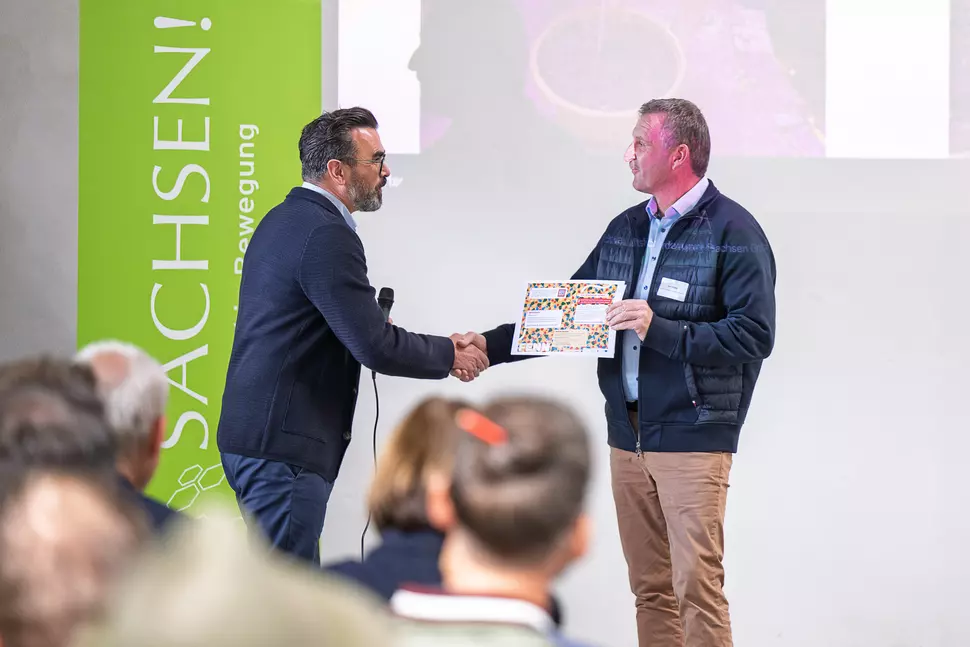 Den länderübegreifenden Kooperationsgedanken unterstrich die Teilnahme einer Delegation aus Oberösterreich von der ARGE s‘Hoiz. Der Kontakt war in diesem Jahr auf einer Reise der WFS zum Thema Möbel/Innenausbau nach Österreich hergestellt worden. Ein besonderes Highlight war in diesem Zusammenhang die Übergabe der Schautafeln zur App-gestützten Spielgeschichte  „Fenn und das Geheimnis des Waldes“ an Bürgermeister Jens Müller von Aue-Bad Schlema. Die in Österreich entwickelte Spielgeschichte darf mit Zustimmung der Fördergeber nun auch kostenfrei zur Landesgartenschau in Aue-Bad Schlema 2027 genutzt werden.