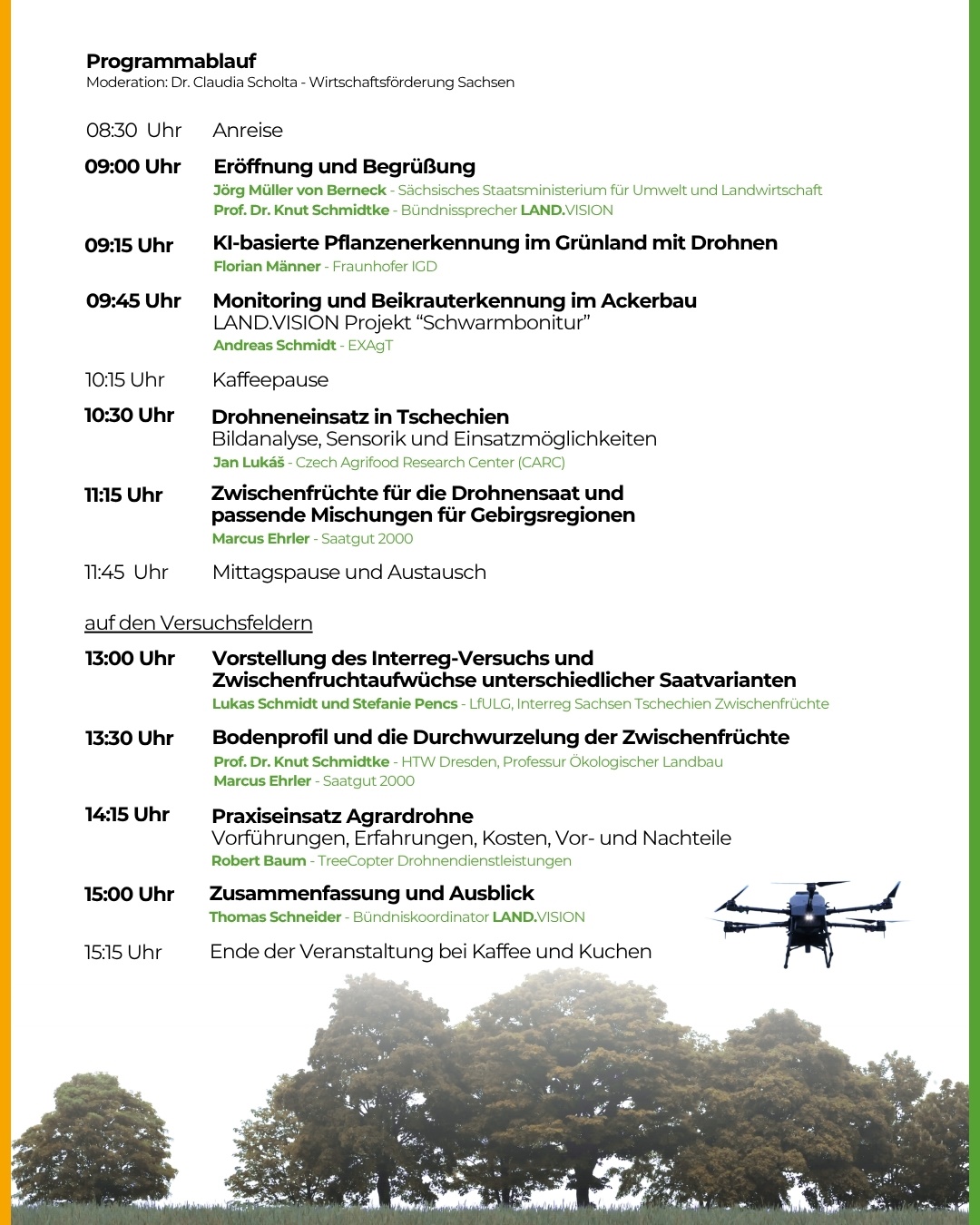 - 11:15 Uhr: Zwischenfrüchte für die Drohnensaat und passende Mischungen für Gebirgsregionen / Marcus Ehrler, Saatgut 2000